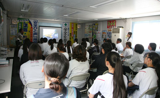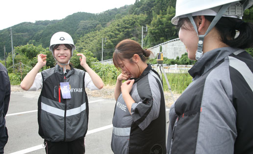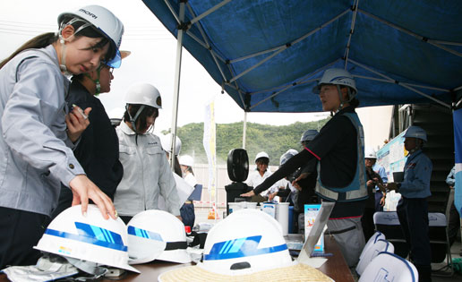 ÅöÆü¤Ï¡¢»²²Ã¼Ô¤ò2¥°¥ë¡¼¥×¤Ëʬ¤±¡¢ºî¶È½ê¤Ç¤Î¹©»ö³µÍ×ÀâÌÀ¤È¸½¾ì¸«³Ø¤ò¸ò¸ß¤Ë¼Â»Ü¤·¤Þ¤·¤¿¡£¸½¾ì¤Ï½»ÂðÃϤ˶áÀܤ·¤Æ¤¤¤ë¤¿¤á¡¢Ëɲ»·¿ÀßÈ÷¤Î»ÈÍѤ䷡ºïÅÚº½¤ÎȽÐÊýË¡¤ËÆÃ¤ËÇÛ褵¤ì¤Æ¤ª¤ê¡¢·¡ºï¹©»öÃæ¤Ï¡¢¥È¥ó¥Í¥ë¹£Æâ¤«¤é´äÀФäÅÚº½¤ò¥Ù¥ë¥È¥³¥ó¥Ù¥¢¤Ç±¿È¤·¡¢¥À¥ó¥×¤Ë¤è¤ë±¿Èºî¶È¤âÃë´Ö¤Ë¹Ô¤¦¤Ê¤É¡¢ÃÏ°è¤Ø¤Î±Æ¶Á¤òºÇ¾®¸Â¤ËÍÞ¤¨¤ë¹©Éפ¬¤Ê¤µ¤ì¤Æ¤¤¤Þ¤·¤¿¡£